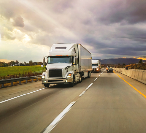 Semi-trucks driving down a divided highway with a sunset in the background. Four-Logistics-Trends-to-Watch-in-2023-Blog-New-492x448.jpg Image Mark Fischer Published